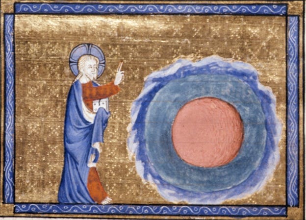 For Gregory, the earth reveals (we might say) the principle of rest, whereas the heaven reveals the principle of motion. These principles comprise a sort of primal ontological “dialectic.” However, the earth is not identical with rest, nor is the heaven identical with motion. Indeed, the Nyssen observes that these ostensible contraries display a “mixture of properties.” The earth, he says, is locally stable but materially or substantially mutable, whereas the heaven is locally mobile but materially or substantially immutable. Hence there is a “transposition” of properties: “unchangeableness in that which is ever moving, and change in that which is immovable.” Interesting: by eliminating the stark distinction between the uppermost and the lowermost elements, Gregory actually complicates the prevailing cosmological model of his day. But why?